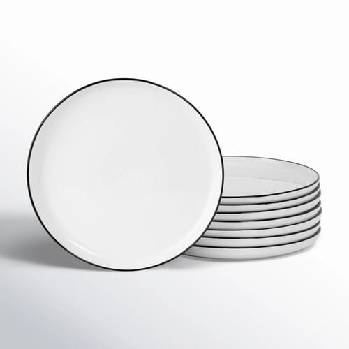 The Gibson Home Oslo 8-Piece Dinner Plate Set with a black rim is the perfect balance between modern elegance and practicality. The AB-grade porcelain material makes this set durable and practical for any event from your morning breakfast to dinner party. The beautiful shape and lipped design add an extra pop of beauty to the plates that will make you fall in love with this dinnerware. Enjoy the Gibson Home Oslo 8-Piece Dinner Plate Set.